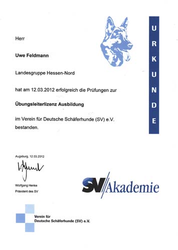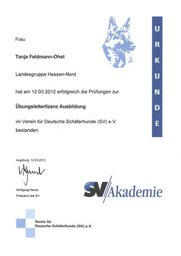 | unsere Qualifikationen für Zucht und Ausbildung: | |